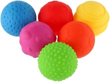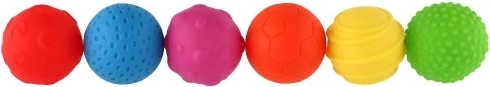 Każda z 6 piłeczek ma unikalną powierzchnię, która rozwija zmysł dotyku i wspiera ciekawskie poznawanie świata poprzez dotyk.