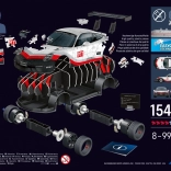 Zbuduj własny model samochodu Porsche 911 GT3 Cup z wysokiej jakości plastikowych elementów z technologią EasyClick. Bez konieczności klejenia, ze stabilną wewnętrzną konstrukcją i funkcjonalnymi obracającymi się kołami, które nadają imponujący realistyczny efekt.