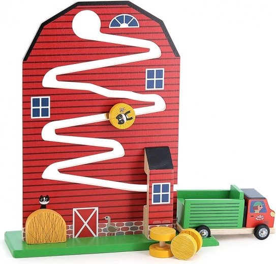Odkryj urok farmy z drewnianym labiryntem od Vilac. Ta zabawka jest idealna dla dzieci od 18 miesięcy i oferuje edukacyjne doświadczenia, które nigdy się nie nudzą. Dzieci uczą się podstawowych zasad przyczyny i skutku, obserwując, jak bele siana ślizgają się po torze.