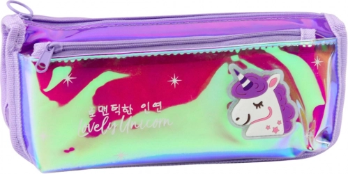 Fioletowy holograficzny szkolny piórnik z jednorożcem