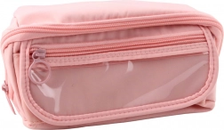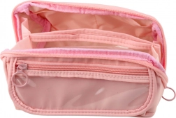 Różowy rozkładany piórnik z przezroczystą kieszenią