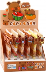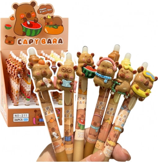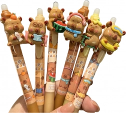 Automatyczny długopis z motywem kapibary oferuje nie tylko funkcjonalność, ale i zabawny design, który docenią wszyscy miłośnicy tych zwierząt. Na szczycie długopisu znajduje się dekoracyjna figurka 3D wykonana z miękkiej gumy, którą można łatwo ścisnąć, co tworzy zabawny element.