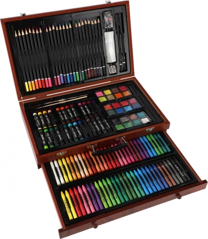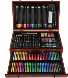 Ten bogaty zestaw plastyczny to świetny wybór dla początkujących i zaawansowanych twórców, którzy szukają wszystkiego, co potrzebne, w jednym miejscu. Kompaktowa drewniana walizka zapewnia przejrzyste przechowywanie i łatwe przenoszenie, dzięki czemu możesz tworzyć w domu, w szkole i w podróży.