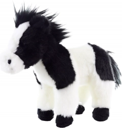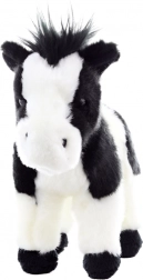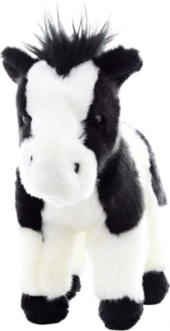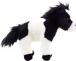 Pluszowy koń ma realistyczny czarno-biały wzór, który nadaje autentyczny wygląd. Jego miękka grzywa i ogon potęgują wrażenie realistyczności.