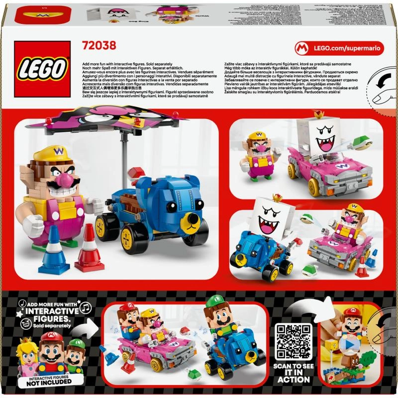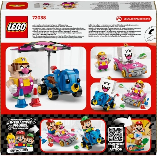 Wyrusz na tor z kultowymi gokartami z gry Mario Kart w zestawie LEGO Super Mario – Wario i King Boo. Zbudujesz dwa szczegółowe pojazdy Badwagon i Teddy Buggy z wystrzeliwaniem skorupek, driftem i odpinanym szybowcem. Idealny prezent dla dzieci od 8 lat i wszystkich fanów Nintendo, z możliwością interaktywnej zabawy po dodaniu figurek LEGO Mario, Luigi lub Peach (sprzedawane oddzielnie).