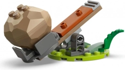 W zestawie znajduje się działająca katapulta na terenowej podstawie – naciśnij dźwignię, aby wystrzelić głazy i wywołać pojedynek z mechem.