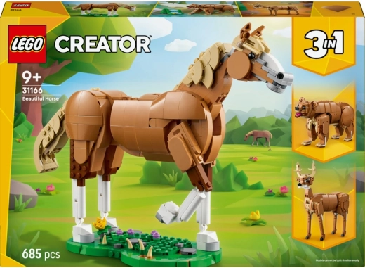 Odkryj nieograniczone możliwości budowania z zestawem Creator 3 w 1: piękny koń. Z jednego kompletu klocków zbudujesz ruchomą figurkę konia z podstawką, którą można ustawiać w trzech różnych pozycjach: na trzech lub czterech nogach albo majestatycznie na tylnych. Wszystkie modele zachwycają dopracowanymi detalami i doskonale nadają się zarówno do zabawy, jak i do ekspozycji w pokoju dziecięcym.