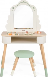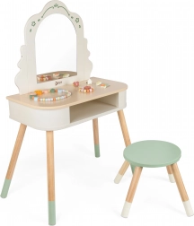 Drewniana toaletka od Classic World jest zaprojektowana specjalnie dla małych dziewczynek, które marzą o własnym miejscu do zabawy w malowanie i przebieranie się. Zawiera okrągłe lustro, stołeczek i różne akcesoria, które pomagają rozwijać ich wyobraźnię oraz umiejętności manualne.