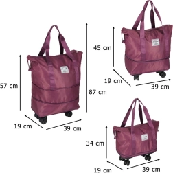 Ta składana torba podróżna jest idealna dla częstych podróżników potrzebujących praktycznego i dostosowującego się bagażu. Dzięki zdejmowanym kółkom i systemowi rozszerzania komór można ją łatwo zmienić z kompaktowej torby na średnią torbę weekendową lub dużą torbę podróżną na kółkach.