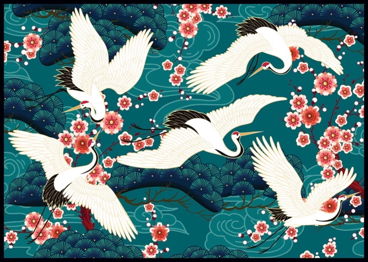To puzzle Tajemny Ogród: Żurawie z 1000 elementami przeniesie Cię do świata spokoju i piękna. Po ułożeniu ma wymiary 67 x 48 cm, oferując zachwycający widok eleganckich żurawi w tajemniczym ogrodzie.