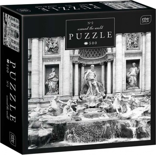 Poczuj magiczną atmosferę Włoch z puzzlami Fontanna di Trevi od INTERDRUK, które mają 500 elementów i po ułożeniu tworzą obraz o wymiarach 47 x 33 cm.