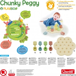 Zabawka PlayBio - Chunky Peggy jest idealna dla małych dzieci dzięki kolorowym elementom konstrukcyjnym i bezpiecznemu wzornictwu. Wykonana z materiału biokompozytowego, który pomaga redukować emisję CO2.