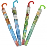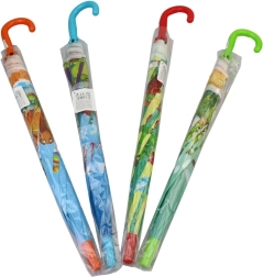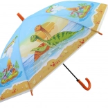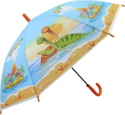 Ta parasolka została zaprojektowana, by ucieszyć wszystkich małych miłośników dinozaurów. Posiada wytrzymałą plastikową konstrukcję, która gwarantuje długą żywotność i łatwą pielęgnację. Dodatkowo dostępna jest w czterech różnych kolorach i wzorach, które ożywiają świat krainy dinozaurów.