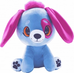 Pluszowa zabawka z dużymi niebieskimi uszami i żywymi oczami, którą dzieci pokochają za jej miękkość i ukojenie, jakie zapewnia.