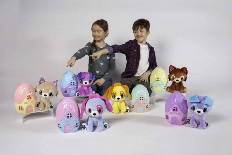 Kolekcja obejmuje urocze pluszowe zabawki w kolorach takich jak fioletowy, brązowy, niebieski, żółty i różowy. Każda zabawka jest wyposażona w domek dla łatwego przechowywania.