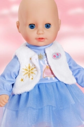 Stylowe zimowe ubranko dla lalek o wysokości 36 cm obejmuje niebieską sukienkę z długimi rękawami, warstwową tiulową spódniczką oraz aksamitnie miękką kamizelkę. Dzięki prostemu krojowi ubieranie jest łatwe nawet dla najmłodszych. Zestaw w figlarnych pastelowych kolorach zapewnia czarujący zimowy wygląd, wygodne ubieranie i mnóstwo kreatywnej zabawy.