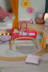 Uniwersalne łóżeczko dla lalek BABY born, które łatwo zamienisz w kołyskę, przenośny koszyk lub łóżeczko dziecięce. W zestawie znajduje się mięciutki komplet pościeli oraz kolorowe zapinane ozdoby do kreatywnego dekorowania. Stabilna podstawa o wyglądzie drewna zapewnia delikatne kołysanie dla spokojnego usypiania lalek i pluszaków.