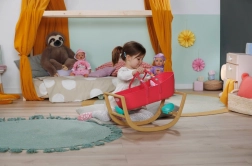 Odkryj praktyczne łóżeczko 3 w 1 dla lalek BABY born, które rośnie wraz z dziecięcą fantazją. W mgnieniu oka zmienisz je z eleganckiej kołyski w przenośny koszyk z wbudowanymi uchwytami lub w stabilne łóżeczko. Lekka plastikowa wanienka w połączeniu z solidną bujaną podstawą w wyglądzie drewna gwarantuje łatwe przenoszenie oraz bezpieczne, płynne kołysanie.