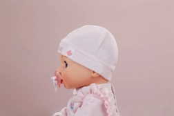 Poznaj lalkę BABY born Annabell 43 cm – mięciutką przyjaciółkę do codziennej zabawy i przytulania. Dzięki funkcjom elektronicznym realistycznie porusza ustami, otwiera i zamyka oczy, reaguje na smoczek i karmienie z butelki, potrafi się ukołysać do snu i zaskakuje zabawnymi dźwiękami przy łaskotkach lub podczas „niemowlęcej gimnastyki”.