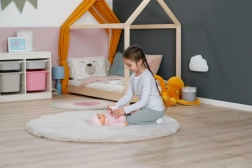 Przyjemnie elastyczna konstrukcja jest idealna do przytulania i codziennej zabawy. Dzieci łatwo trzymają lalkę, noszą ją i układają do snu.