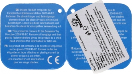 Mocne szwy i haftowane elementy bez drobnych części zapewniają bezpieczną zabawę także dla najmłodszych dzieci.