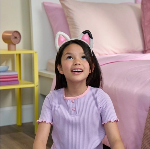Rozświetl każde przebieranie i zabawę w odgrywanie ról dzięki interaktywnej opasce inspirowanej serialem Gabinin magiczny domek. Realistyczne kocie uszka z różowymi wnętrzami i charakterystycznym czarnym wykończeniem ożywają dzięki światłom, dźwiękom i aktywacji ruchem, pozwalając dzieciom natychmiast zanurzyć się w magiczny świat Gabiny.