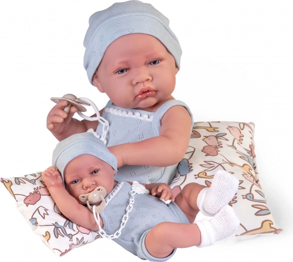 Ta realistyczna lalka niemowlę new born jest ręcznie wykonana w Hiszpanii i zachwyca precyzyjnie dopracowanymi detalami – od drobnych paluszków po wierne niemowlęce fałdki. Całowinylowe, miękkie ciałko jest bardzo przyjemne w dotyku i umożliwia standardowe kąpiele (z ostrożnością, by nie zamaczać rzęs).