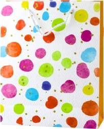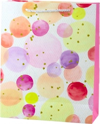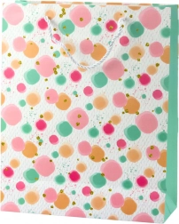 Ta torba prezentowa przyciąga uwagę swoim oryginalnym designem i niepowtarzalnym charakterem, który nada Twojemu prezentowi wyjątkowy wygląd. Delikatne pastelowe i neonowe kropki w połączeniu ze złotymi detalami tworzą subtelny i elegancki efekt.