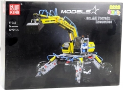 Model koparki terenowej od Mudking jest wierną repliką ciężkiej maszyny budowlanej i oferuje różne elementy funkcjonalne: ruchome ramię koparki, sterowaną łyżkę, obrotową kabinę operatora oraz elastyczne podpory/nogi odpowiednie do trudnego terenu. Wszystkie części wykonane są z wysokiej jakości klocków ABS, co gwarantuje trwałość i precyzyjne łączenie.