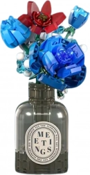 Ten zestaw konstrukcyjny oferuje połączenie kolorowej elegancji i kreatywnej zabawy. Model w chłodnych tonach niebieskiego i czerwonego przyciąga uwagę precyzją wykonania, kontrastami barw i estetycznym kształtem. Kwiaty w tej kompozycji obejmują niebieskie róże, czerwone tulipany oraz drobne detale imitujące dzwonki lub jagody.
