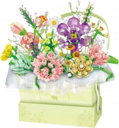Bukiet zawiera różne rodzaje kwiatów, takie jak róże, tulipany czy stokrotki, uzupełnione subtelnymi elementami florystycznymi. Całość wzbogacono o oświetlenie LED, które rozświetla kompozycję i nadaje jej bajkowy charakter – zwłaszcza wieczorami. Zasilanie zapewniają baterie typu LR44, które są częścią zestawu.