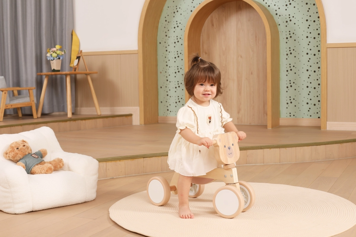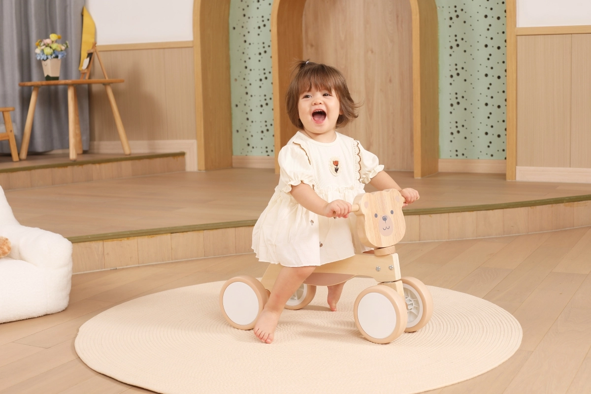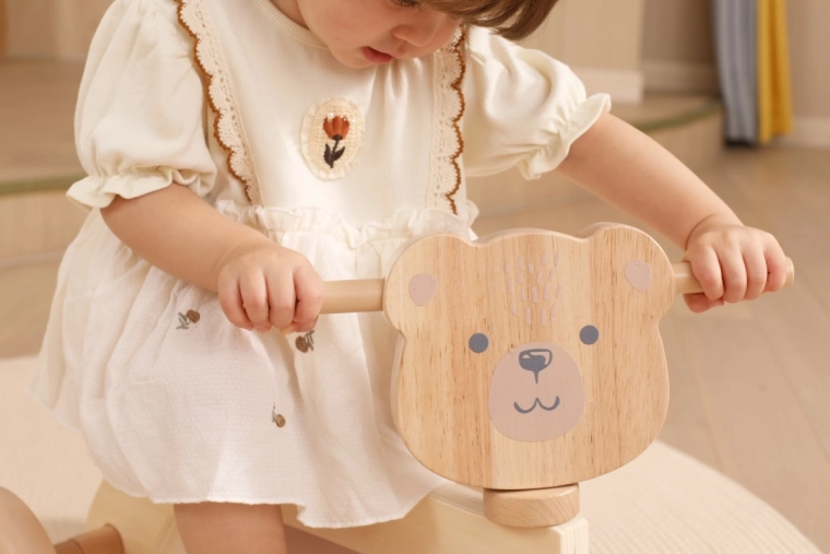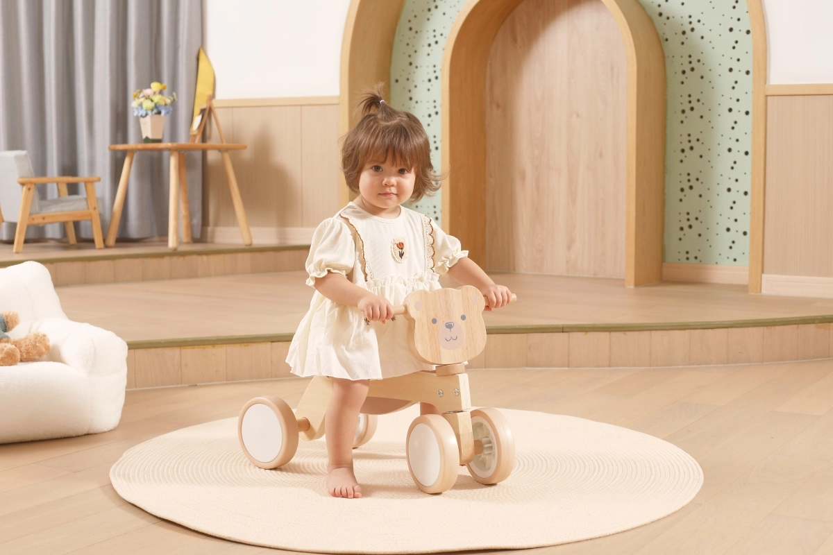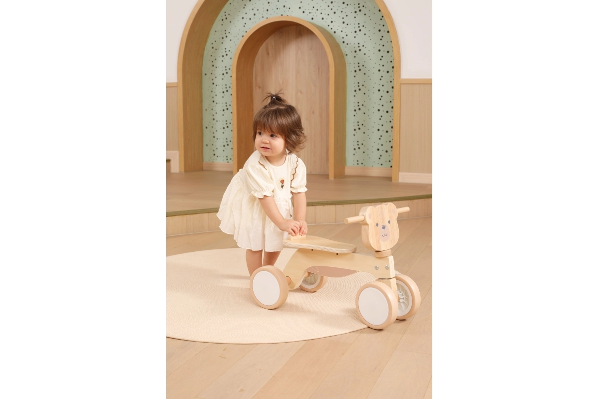 Jeździk VIGA PolarB został zaprojektowany dla małych kierowców, którzy uczą się koordynacji i równowagi. Solidna drewniana konstrukcja, niskie siodełko z oparciem oraz gładkie, zaokrąglone krawędzie zapewniają pewność przy każdym odepchnięciu. Cztery szerokie kółka EVA jeżdżą cicho i nie rysują podłogi, dzięki czemu jeździk idealnie sprawdzi się w pomieszczeniach i na gładkich powierzchniach na zewnątrz.