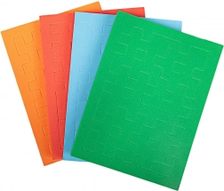 - Zawiera 4 arkusze z elementami do złożenia 4 różnych klocków.