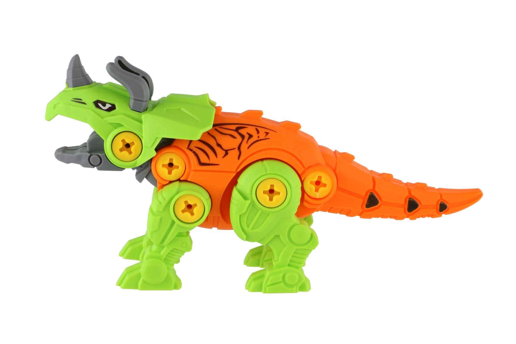 Złożone dinozaury mają stawy do ustawiania pozycji oraz żywe kolory, które pobudzają twórczą zabawę.