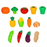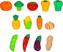 - Owoce i warzywa na rzep (13 szt.): groszek w strąku, zielona papryka, żółta papryka, papryczka chili, cebula, brokuł, kukurydza, pomidor, ananas, dynia, bakłażan, fasolka, marchewka.