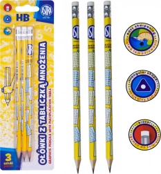 Zestaw trzech ołówków ASTRA o twardości HB z praktycznym nadrukiem tabliczki mnożenia ułatwia naukę i pisanie. Oferują ergonomiczne, trójkątne korpusy dla wygodnego chwytu, wysokiej jakości grafit 2,2 mm oraz praktyczną gumkę na końcu. Drewno pochodzi z odpowiedzialnie zarządzanych lasów.