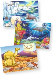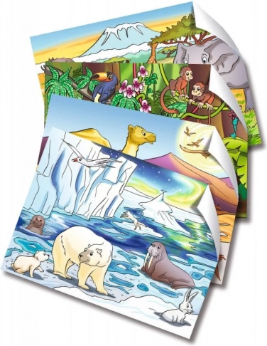 Dzięki dołączonym wzorom młodsze dzieci łatwo znajdą właściwe elementy, a starsze podejmą wyzwanie bez podpowiedzi. Świetny wybór do zabawy w domu i w przedszkolu.