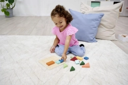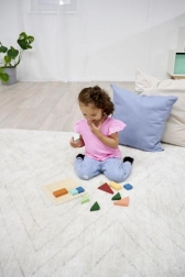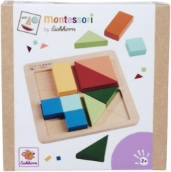 Ta układanka Montessori stawia przed dziećmi ciekawą zagadkę: ułożyć różnorodne kształty tak, aby wypełniły pole kwadratu. Elementy można dodatkowo dowolnie mieszać między kwadratami i tworzyć nowe kolorystyczne kombinacje, co wydłuża grywalność i pobudza kreatywność.