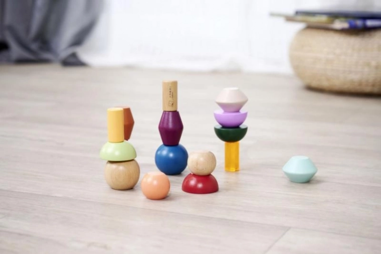 Klocki wykonane są z wysokiej jakości drewna z certyfikatem FSC i przeznaczone dla dzieci od 3 lat. Zestaw naturalnie wspiera zasady Montessori – sortowanie, układanie i odkrywanie relacji między kształtami i kolorami, a jednocześnie rozwija małą motorykę oraz wyobraźnię przestrzenną.