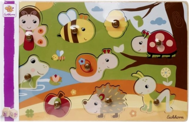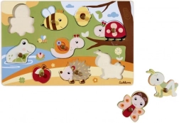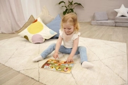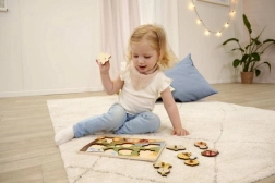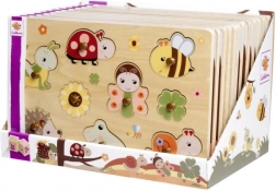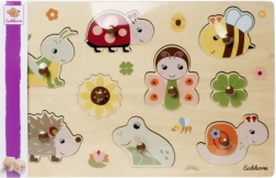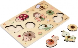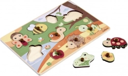 Drewniane puzzle składają się z 9 elementów i zapewniają przyjemne wrażenia z układania. Wymiary 28 × 18 cm gwarantują wygodną manipulację i łatwe przechowywanie.