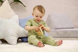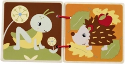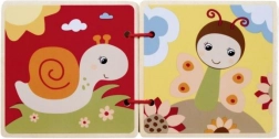 Świetnie sprawdzi się w kąciku dziecięcym i w wózku podczas wycieczek. Proste ilustracje oraz naturalny materiał zachęcają do wielokrotnego oglądania i cichej zabawy.