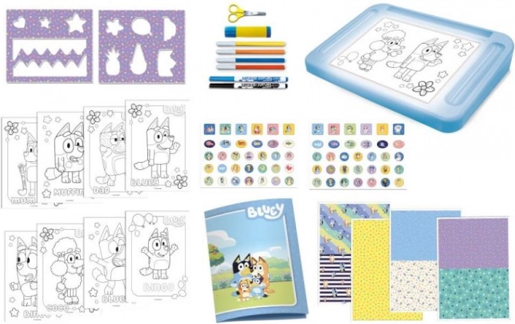 • szablony z motywami Bluey i ilustracjami
