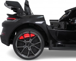 Ten luksusowy dwuosobowy model 911 GT3 dla dzieci zapewnia autentyczne sportowe wrażenia. Mocna bateria 24V 10Ah zasila cztery silniki 200 W, dzięki czemu pojazd płynnie przyspiesza i radzi sobie z nierównościami. Pilot zdalnego sterowania z awaryjnym przyciskiem Stop pozwala rodzicom mieć wszystko pod kontrolą, a przednie i tylne światła LED podkreślają realistyczny wygląd.