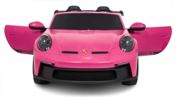 Stylowy dziecięcy samochód elektryczny inspirowany ikoną PORSCHE 911 GT3 oferuje dwa siedzenia, mocny napęd 24V oraz cztery silniki 200 W dla płynnej jazdy. Dzieci ucieszą działające światła LED, otwierane drzwi, panel multimedialny z FM/MP3/USB/Bluetooth, a bezpieczną jazdę zapewnią pasy bezpieczeństwa i rodzicielski pilot 2,4 GHz. Piankowe koła EVA tłumią nierówności, a tylne zawieszenie zwiększa komfort.