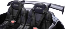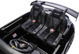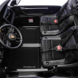 Panel multimedialny z wyjmowanym tabletem MP4 umili czas ulubionymi melodiami, radiem FM, odtwarzaniem MP3 przez USB/AUX i Bluetooth. Tryb sport podkreśla efekty dźwiękowe po wciśnięciu gazu. Podwójne siedzisko z ekoskóry z welurowym wykończeniem i pasami bezpieczeństwa ma 3-stopniową regulację dla idealnej pozycji.