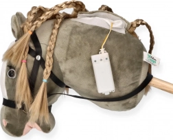 Dzięki lekkiej konstrukcji konik jest łatwy w prowadzeniu także dla młodszych dzieci. Przejrzyste wymiary ułatwiają wybór – głowa konika ma 30 × 26 × 13 cm, a długość kija wynosi 40 cm, co sprawia, że świetnie nadaje się do zabaw w domu i plenerowych przygód.