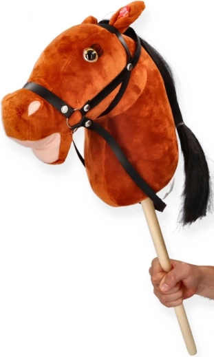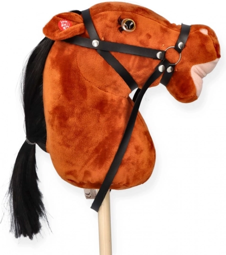 Pluszowy konik na kiju Fanta premium dla dzieci 3+. Miękka głowa, kij 40 cm, całkowita długość 70 cm. Bezpieczna zabawka z certyfikacją CE.