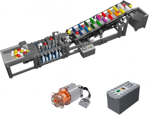 - Zestaw konstrukcyjny (1281 elementów), elektryczny silnik, moduł sterujący, kolorowe kulki, instrukcja montażu, oryginalne opakowanie