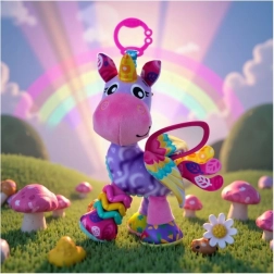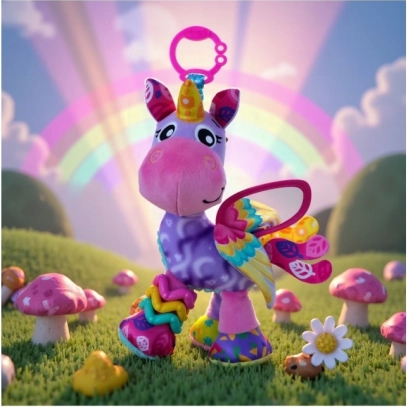 Szukasz zabawki sensorycznej, która zainteresuje Twoje dziecko od pierwszego dotyku i spojrzenia? Jednorożec Stella łączy miękkie pluszowe materiały, szeleszczące skrzydła, brzęczące kółeczka i bezpieczne lusterko na skrzydle. Błyszczący róg, srebrne skrzydło i warstwowy ogon wspierają ciekawskie odkrywanie i małą motorykę.