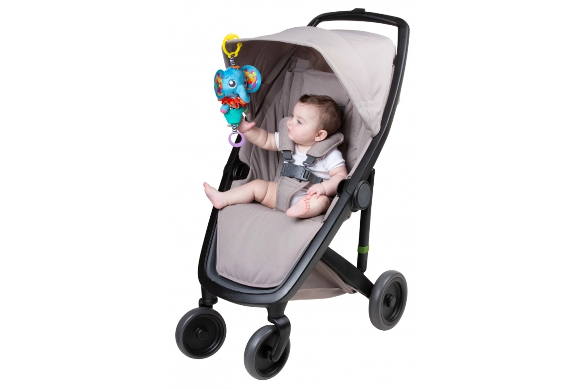 Uroczy muzyczny słonik Elly od Playgro to mięciutka zawieszka, która uspokaja melodiami, bawi w podróży i jednocześnie wspiera rozwój zmysłów. Dzięki mechanizmowi do naciągania maluszek może sam uruchamiać muzykę, kontrastowe kolory i różne faktury stymulują wzrok i dotyk, a klips w kształcie „C” zapewnia łatwe przymocowanie do wózka, fotelika samochodowego czy łóżeczka.